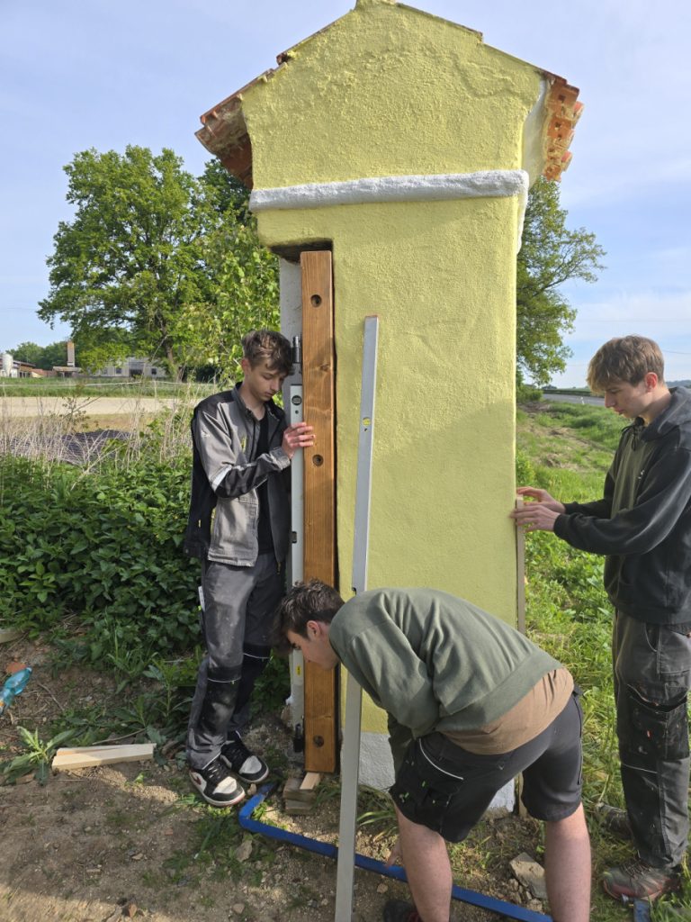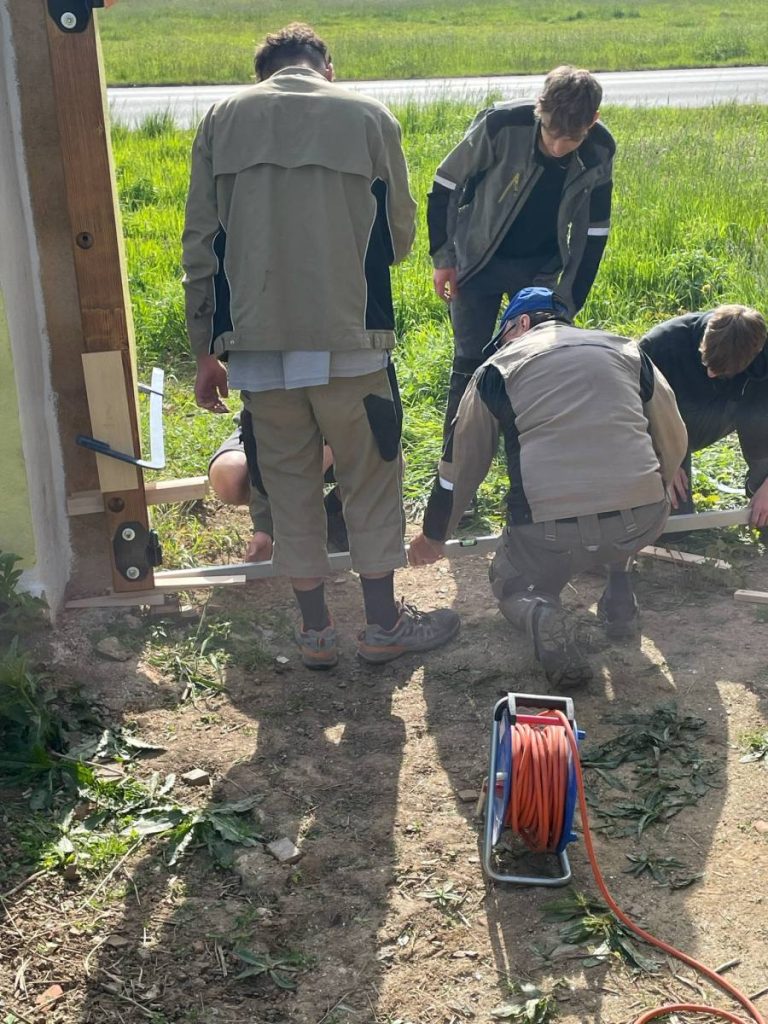 Ve středu 14. května 2025 vyvrcholila celá spolupráce instalací vrat. Žáci obou škol, za podpory svých učitelů odborného výcviku, společně osadili vrata do připraveného otvoru ve zdi.