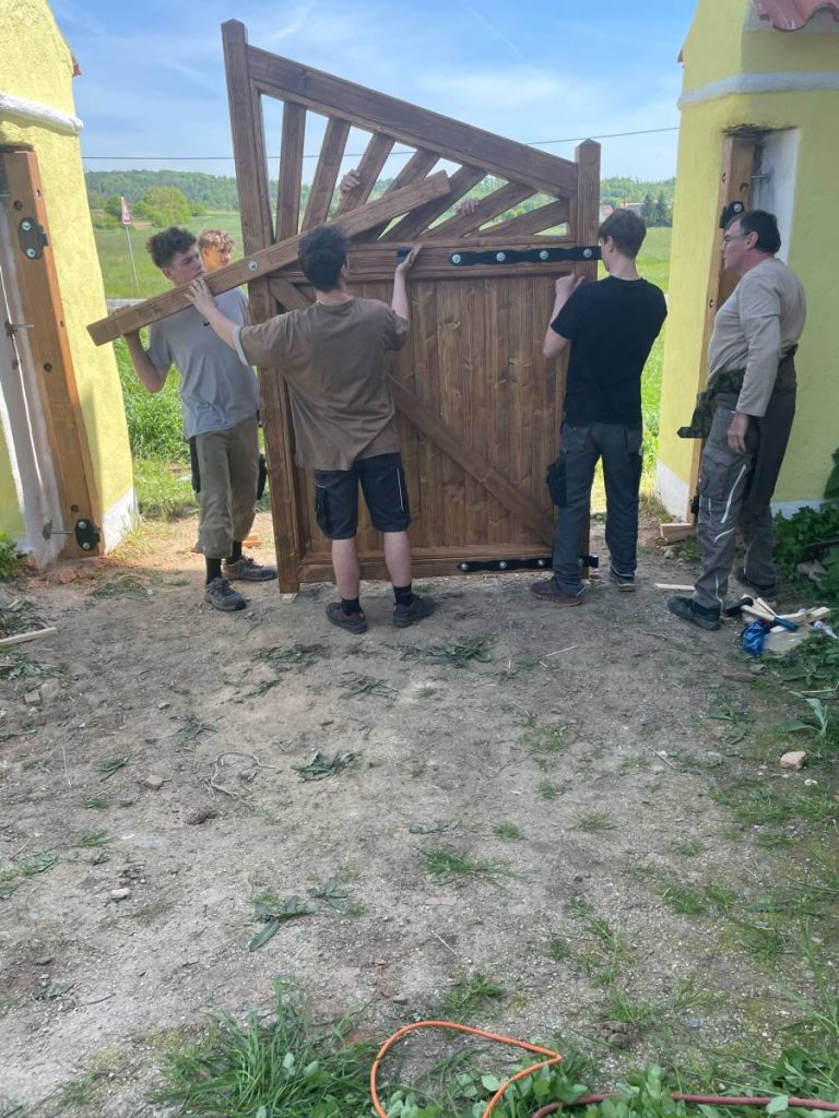 Na podzim roku 2024 naše škola – Střední odborné učiliště Domažlice – navázala spolupráci se Střední odbornou školou a Středním odborným učilištěm Horšovský Týn na zajímavém a smysluplném projektu. Cílem bylo vyrobit a nainstalovat nová dřevěná vrata do kamenné zdi obory v Horšově.