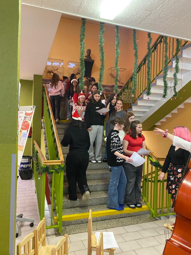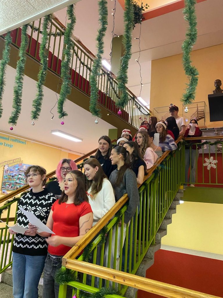 O příjemnou vánoční náladu se postarala paní učitelka Ing. Svitálková, která připravila doprovodný program plný hudby a zpěvu. Program zajišťovali žáci třídy G2.K z oborů kosmetické služby a gastronomie, kteří svým vystoupením navodili sváteční atmosféru a přispěli k tomu, že se jarmark stal nejen prodejní, ale i kulturní událostí.