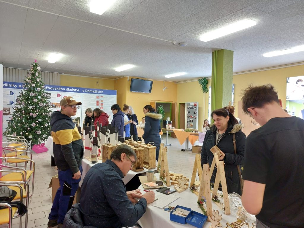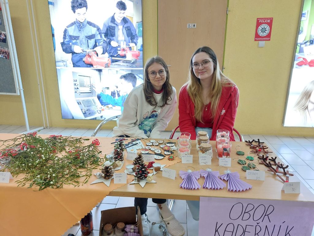 Na akci se prezentovaly všechny vyučované obory. Kadeřnice a Kosmetičky nabízely drobné dárky, a navíc kosmetičky také oblíbenou službu – lakování nehtů, která byla mezi návštěvníky velmi žádaná. Truhláři vystavili a prodávali ručně vyrobené dřevěné dekorace, které vynikaly svou kvalitou, precizním zpracováním a nápaditým designem. Jejich výrobky sklidily obrovský obdiv a staly se jedním z největších lákadel jarmarku – od drobných ozdob až po praktické dekorace. Obor kuchař-číšník potěšil návštěvníky voňavou kávou a dalšími dobrotami, které navodily příjemnou atmosféru a zahřály v chladném zimním dni. Kovoobory se pochlubily praktickými i dekorativními výrobky z kovu, které ukázaly šikovnost a kreativitu našich žáků.